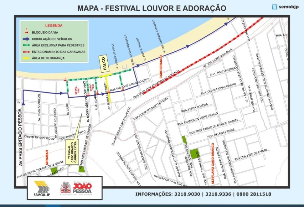 Chegada – Até meia-noite, as pessoas que vêm dos bairros da Zona Sul, utilizando a Avenida João Cirilo da Silva, no Altiplano, no sentido Busto de Tamandaré, deverão priorizar o acesso pela ladeira da Barreira, até a Rua Edvaldo Bezerra Cavalcanti Pinho (Rua da Barreira) para chegar ao local do evento. O acesso de quem vem dos demais bairros deve ser feito pelos corredores Beira Rio, Rui Carneiro e Epitácio Pessoa.