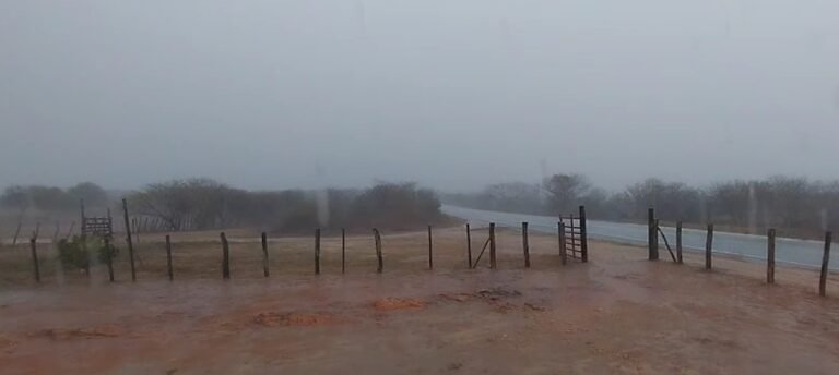 Nesta sexta-feira (5), mostram as chuvas caindo em Mãe D’Água e Paulista e o tempo nublado na Serra de Santa Luzia.