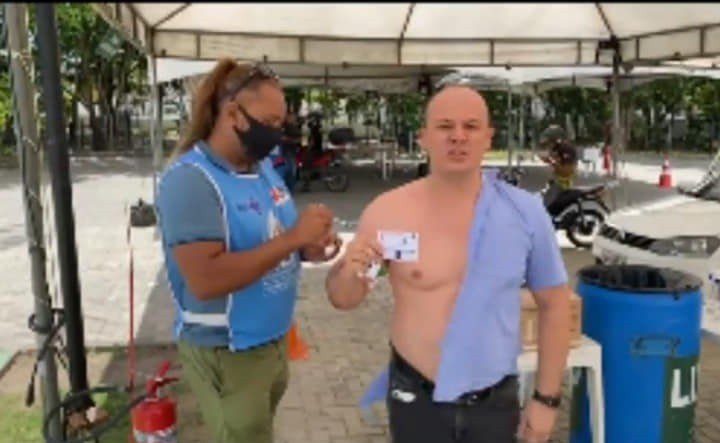 O líder da oposição na Assembleia Legislativa da Paraíba (ALPB), deputado Cabo Gilberto Silva (PSL) tomou nesta quarta-feira (13), a primeira dose da vacina Coronavac contra a Covid-19 e fez um veemente protesto nas redes sociais dizendo que havia se vacinado como forma de fazer os seus pares voltarem a trabalhar.