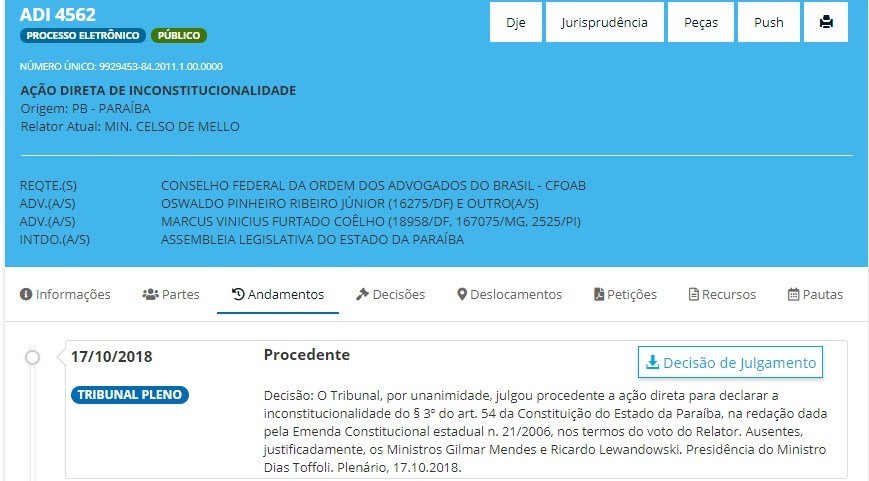 Os ex-governadores da Paraíba não terão mais direito a aposentadoria. É que o Supremo Tribunal Federal (STF), por unanimidade, julgou procedente a ação direta para declarar a inconstitucionalidade do §3º do artigo 54 da Constituição do Estado da Paraíba.