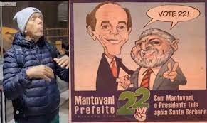 O então candidato divulgou fotos ao lado do petista e um santinho estampando o lema “com Mantovani, o presidente Lula apoia o crescimento de Santa Bárbara”. O candidato a vice, Larguesa, foi indicado pelo PT. Os munícipes os derrotaram. A informação é da Coluna Cláudio Humberto, do Diário do Poder.