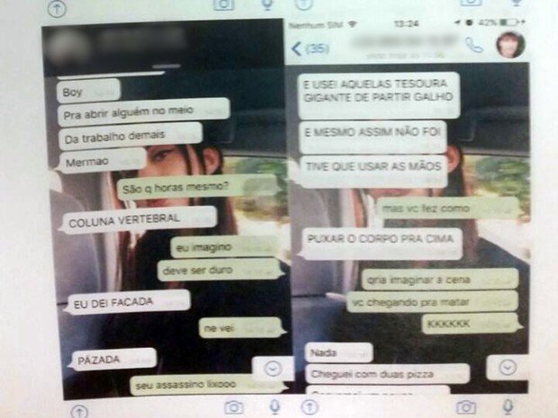 Novos detalhes da conversa via WhatsApp entre François Patrick Gouveia e Marvin Henriques Correia, suspeitos de participação na chacina da família brasileira em Pioz, na Espanha, revelam o desprezo de Patrick pelas vítimas. Em um dos trechos, após esquartejar Janaína Américo e as duas crianças de 1 e 3 anos, Patrick comenta com Marvin – amigo que teria “dado dicas” ao assassino -, que “para abrir alguém no meio dá trabalho demais”. Ao que Marvin responde “eu imagino, deve ser duro”.