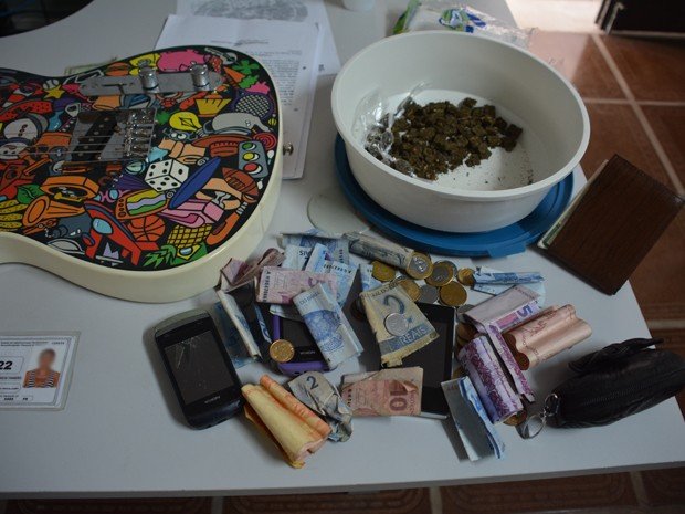 Na ação policial, o Goe contou com o apoio de um cão farejador, que ajudou na busca pelas drogas. “É um projeto-piloto que queremos amadurecer para que o nosso trabalho seja mais rápido”, disse. O delegado revelou que primeiro o cão conseguiu localizar drogas que os policiais não acharam. “As drogas eram em pequena quantidade e estavam bem escondidas”, frisou. Os policiais encontraram maconha, dinheiro e celulares, além de uma carteira de visitante de presídio e uma guitarra. Todos os presos foram levados para a sede do Goe.