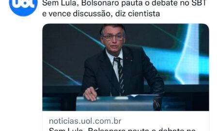O Portal UOL divulgou reportagem, no sábado (24) à noite, analisando o debate presidencial realizado pelo SBT. E segundo a analista ouvida...