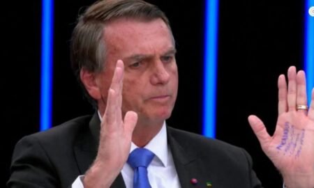 Durante a entrevista ao Jornal Nacional, o presidente Jair Bolsonaro levou uma “colinha” na mão esquerda. O chefe do Executivo, contudo, não conseguiu...