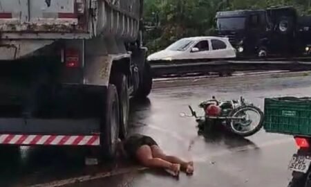 Um mulher morreu e três pessoas ficaram feridas em um acidente grave envolvendo um caminhão e uma motocicleta na BR-101, no sentido...