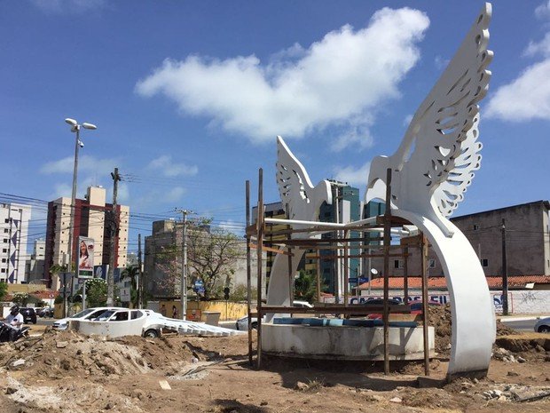 A Secretaria de Infraestrutura está retirando a obra “As Aves de Arribação”, do artista Marcos Pinto, da Rotatória do Altiplano, nesta quarta-feira. A escultura só vai ser reinstalada no fim do projeto, previsto para o segundo semestre de 2017, e em um novo local.