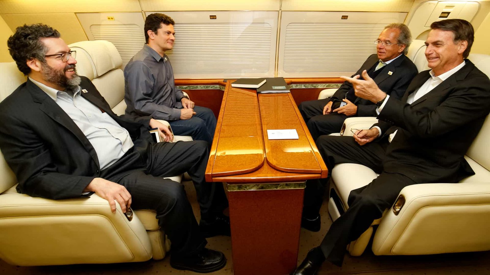 Vão com Bolsonaro os ministros Paulo Guedes, da Economia; Sérgio Moro, da Justiça; Augusto Heleno, do Gabinete de Segurança Institucional (GSI); Ernesto Araújo, das Relações Exteriores; Tereza Cristina, ministra da Agricultura, e Ricardo Salles, do Meio Ambiente.