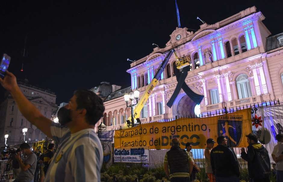 Com uma grande presença de torcedores do lado de fora da Casa Rosada, sede do governo da Argentina, em Buenos Aires, o velório de Diego Maradona foi aberto ao público às 6 horas (de Brasília) desta quinta-feira e seguirá até 16 horas. A expectativa é que 1 milhão de pessoas passem pelo local para se despedir do ídolo, que faleceu no início da tarde de quarta após sofrer uma parada cardiorrespiratória.