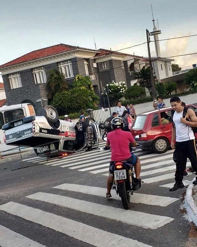 Viatura da Polícia Militar capota após colidir em cruzamento no Centro de JP