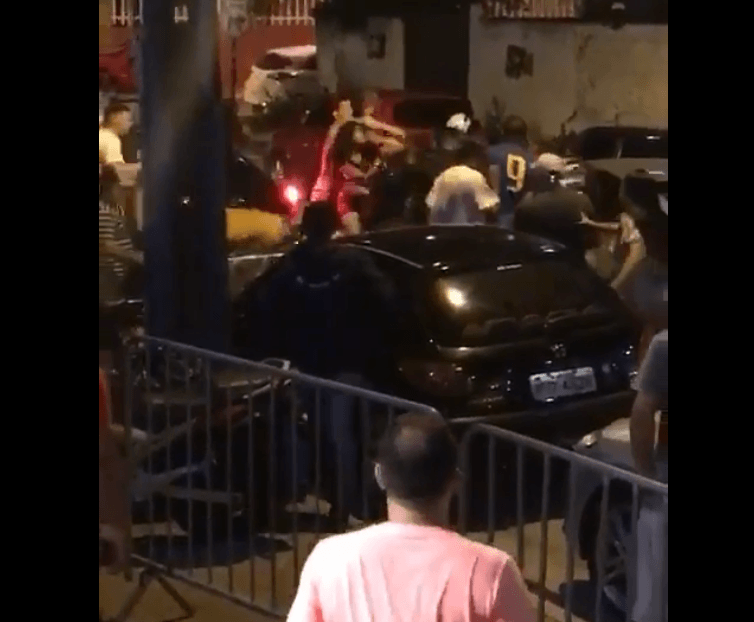 Além das agressões, durante a briga um homem sacou de uma arma de fogo e disparou várias vezes para o alto. Não houve registro de feridos.