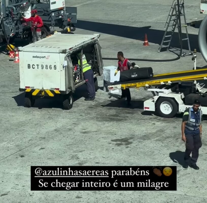 O cantor Gegê Bismarck usou o Instagram para reclamar do serviço realizado por funcionários de um aeroporto. na publicação, o cantor e a sua equipe mostram insatisfação com o modo como os funcionários carregam as bagagens para a esteira do avião. Nas imagens, é possível ver que os funcionários do aeroporto jogam os equipamentos do cantor.