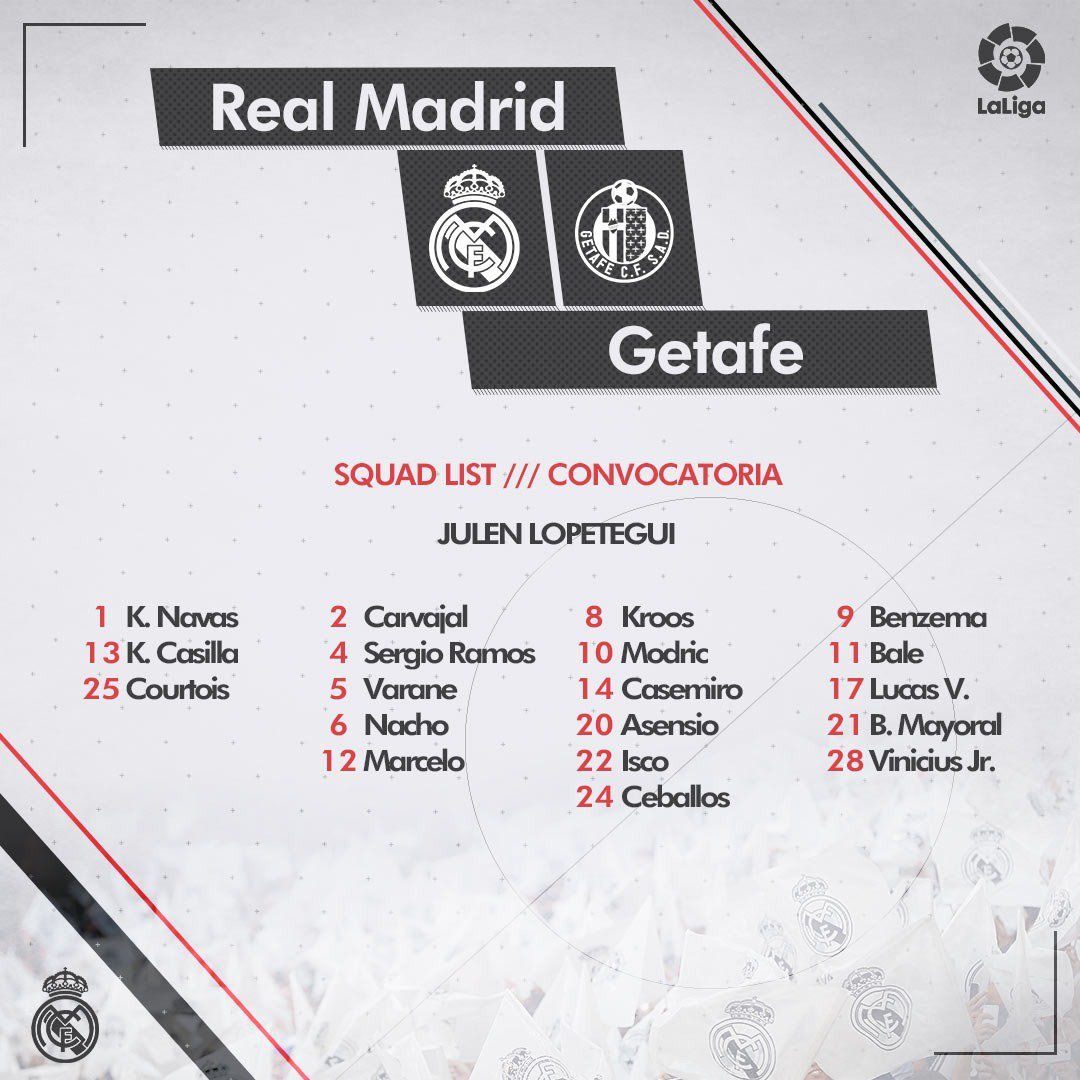 O treinador da equipe madrilenha listou 20 jogadores. Veja a lista abaixo: