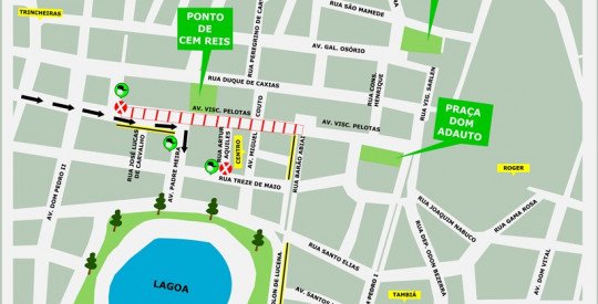 O fechamento das vias será iniciado às 18h. Os bloqueios serão monitorados permanentemente por agentes de mobilidade, que também orientarão os desvios. As rotas serão as seguintes: quem estiver trafegando em direção à Praça 1817 terá que seguir pela via baixa, acessando a Padre Meira para chegar até o Parque Solon de Lucena. Para acessar a Visconde Pelotas a melhor alternativa é a Avenida Barão de Abiaí.
