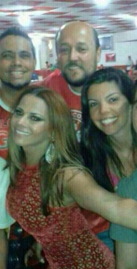 A foto com o homem calvo horas antes, na quadra do Salgueiro. O rapaz é ritmista da escola.