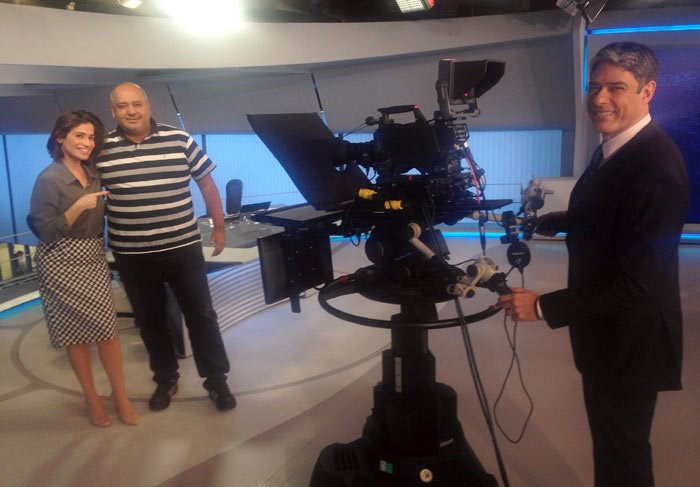 Na foto, Bonner aparece no lugar de um dos operadores de câmera: